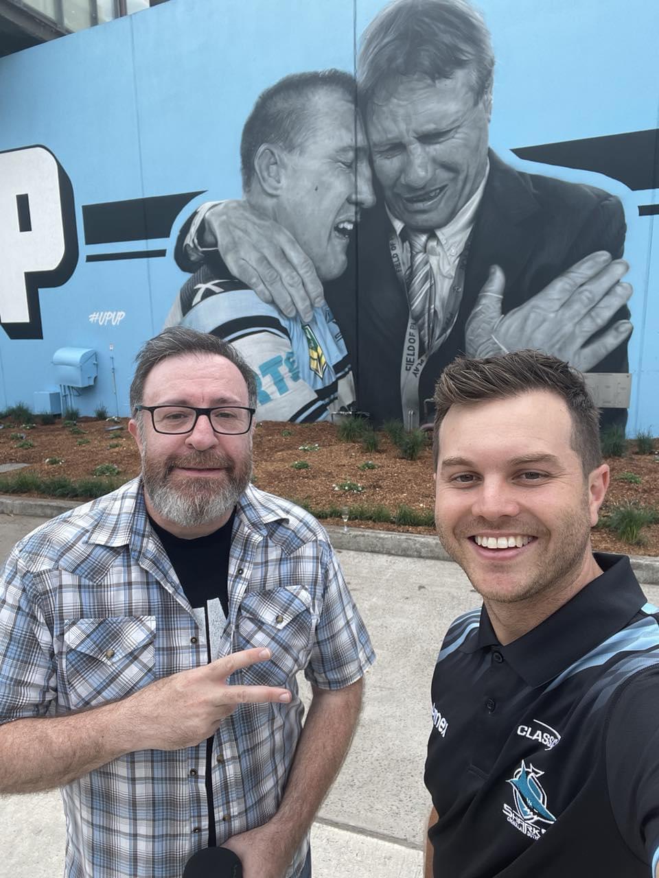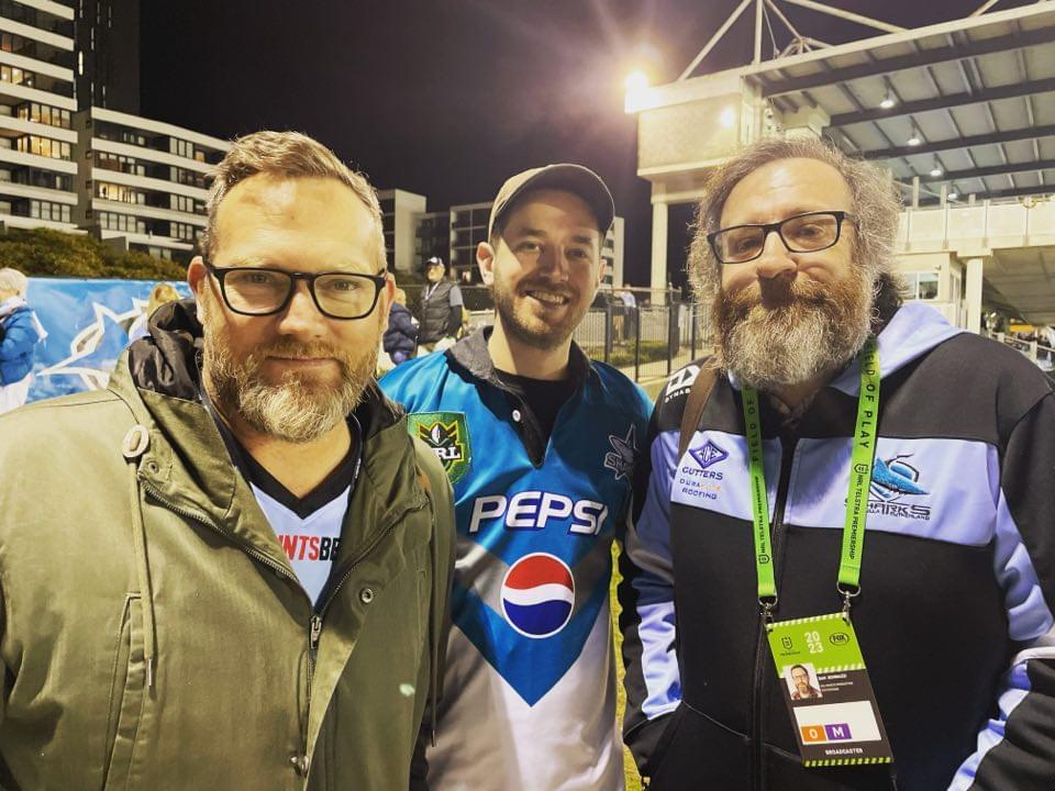 From 2015 to 2019 we also did SharkCast TV, a seperate form of content officially with the Cronulla club. This was developed as a livestream on Tuesday nights, produced by Scott Maxworthy, with longtime Sharks media manager Rob Willis the third host along with Sam and Newman. Other Sharks family including former NRL star Ben Ross were also featured. It was strongly linked to direct communication with the fans, and then developed into pre and post game shows. We interviewed everyone from Andrew Ettingshausen to Peter Gow to Shane Flanagan with the Premiership trophy only days after the 2016 Grand Final, as well as weekly chats with then current players.